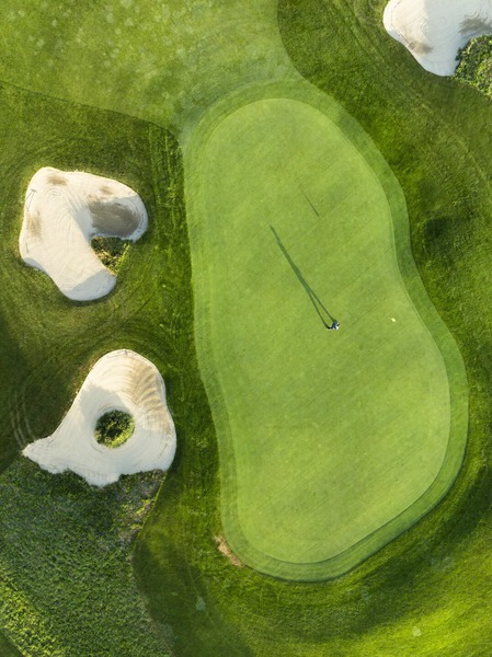 The hanging fairways allow a perfectly played ball to roll from the tee to the lower edge of the semi and create an awkward position for a difficult second or third shot into the green. If you reach the green in regulation, heavily undulating greens wait for the putts.