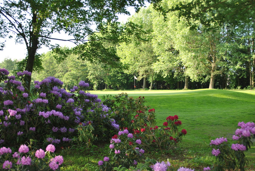The 18-hole golf course is mostly flat, with only slight differences in elevation. The design consists of partially narrow courses, which are separated from each other by tall rows of trees.