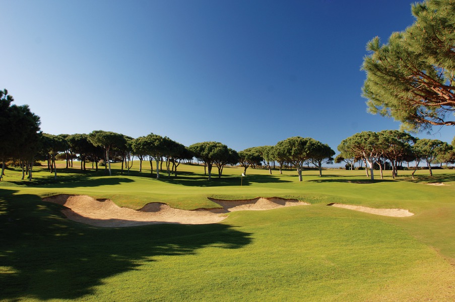 Pine Cliffs was built in a stone pine grove on impressive cliffs above beautiful, sandy beaches, which are so typical for the Algarve. With nine holes, of which none is very long (only two holes are longer than 360 m) it still poses an interesting challenge. The jewel is par 3, which takes course over te Champion-Tee over a canyonand calls for a 205 m long and exact drive over the bay.