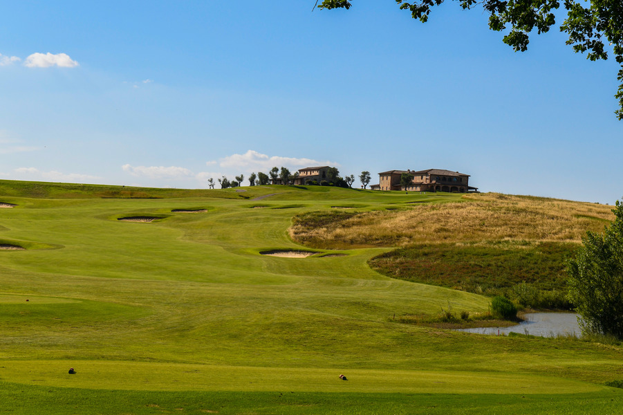 The Royal Golf La Bagnaia Course is the first Tuscan, 18 holes designed by renowned architect Robert Trent Jones, Jr. It is a Par 71, which is 6,101 metres long, covering an area of 1300 hectares, perfectly harmonized within the gently rolling hills of Siena. The Tuscan landscape is a typical example of Inland Links, which refer to the Scottish Highlands with the "Rough" that waves in the wind. The course is enhanced by beautiful lakes and a majestic Club House, where you can enjoy a unique view on all 18 holes and the towers of Siena.