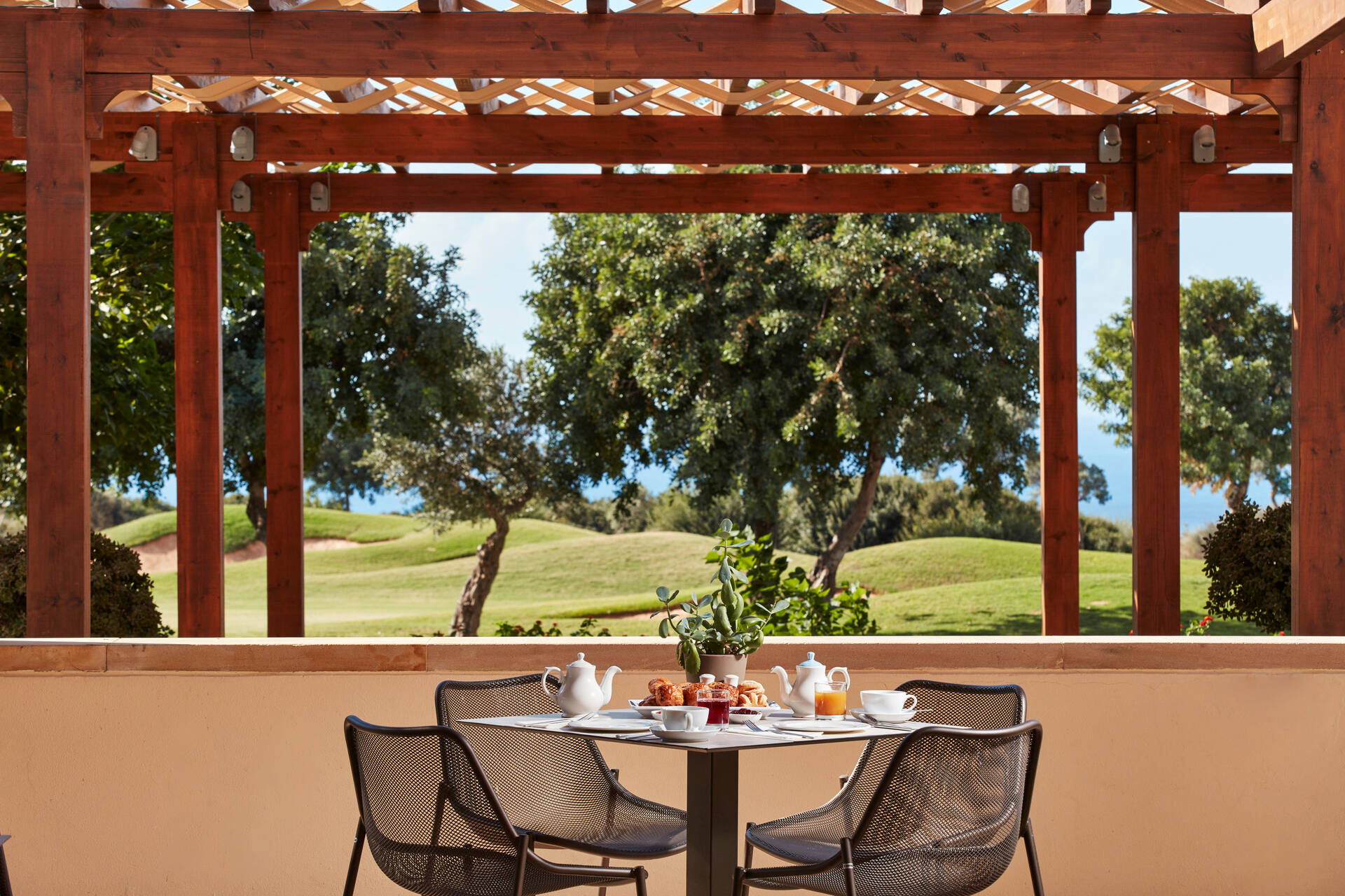 Visually spectacular, the course expands through indigenous olive and carob trees and is built on two plateaux, separated by a dramatic ravine with outstanding views over the Mediterranean. And the staggering 130 metre gorge dividing tees at the 7th hole is an enticing challenge for all lovers of this beautiful game.