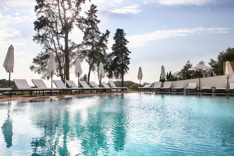 In the rural and sparsely populated Alentejo region, located between the Tejo River and the Algarve, you will find unspoiled landscapes, authentic villages, great beaches and a unique gastronomy. Here in the town of Santiago do Cacém, which can look back on a long history as it is located on an old Roman road, you will find the Santiago Hotel with its 32 rooms, all of which are very comfortably furnished and have a balcony or terrace. The hotel ideally combines traditional and modern design. It is located on a hill overlooking Santiago Castle. The Semente restaurant, which focuses on local, traditional cuisine, spoils you with culinary delights. You can relax wonderfully at the swimming pool in the garden. Magnificent beaches are only 20 kilometers away. Several golf courses are under construction in the immediate vicinity. The Dunas Course from Terras da Comporta, an excellent links course designed by the renowned architect David McLay-Kidd, is already finished and welcomes players, as well as the Torre Course, designed by Sergio Garcia.