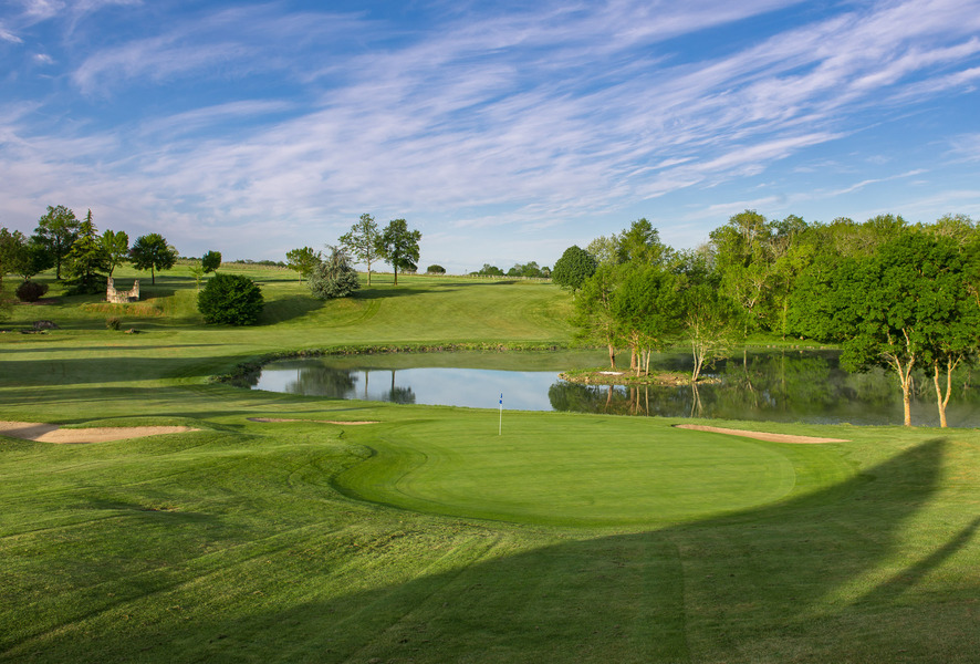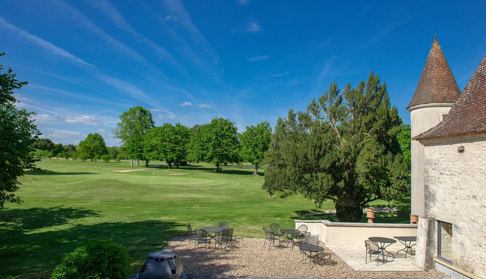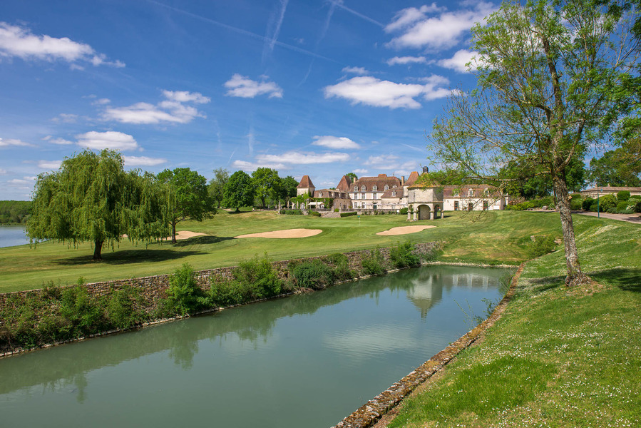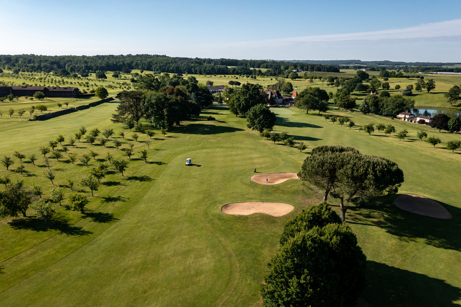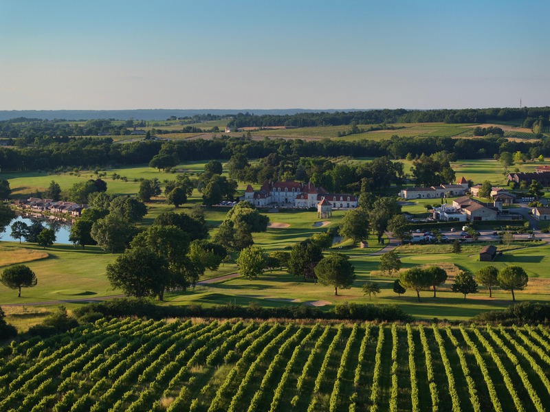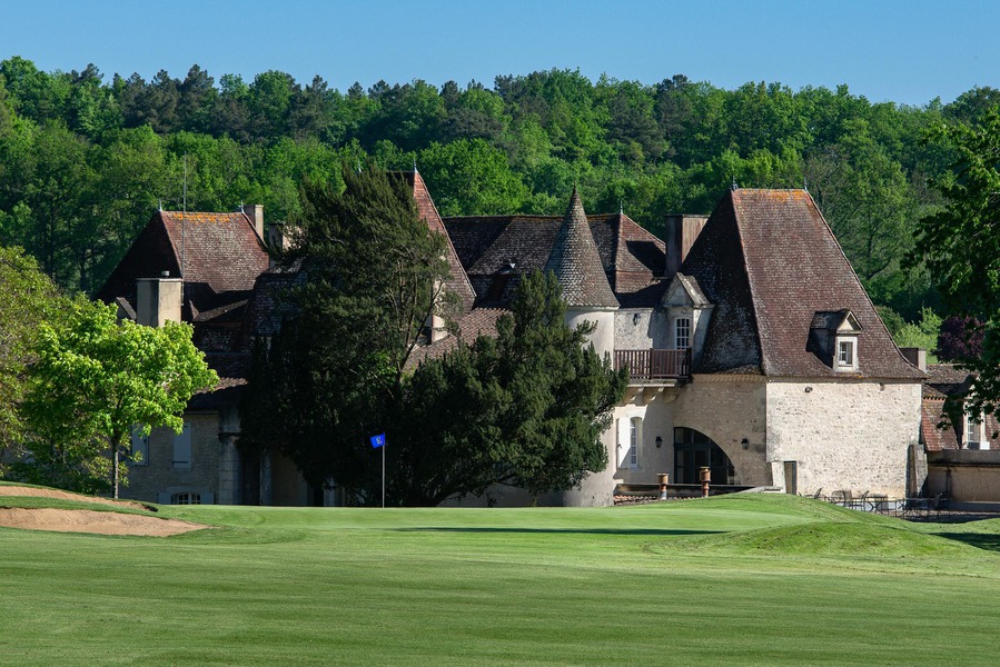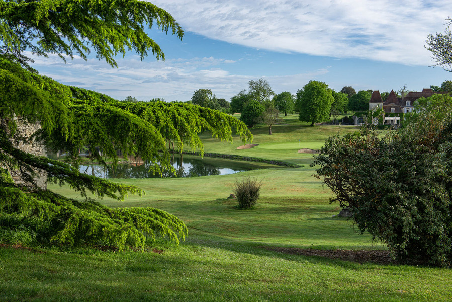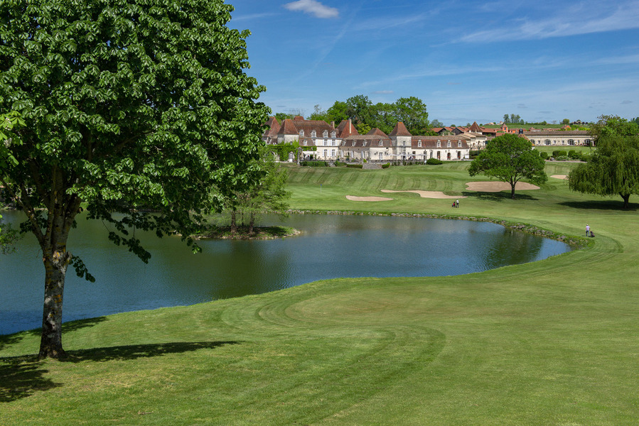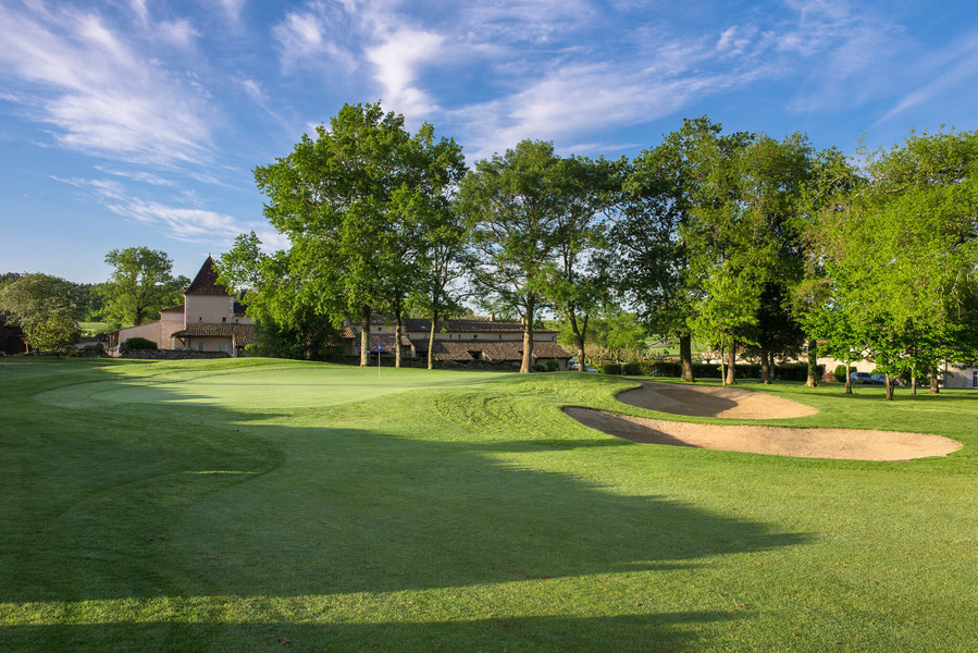 Es un campo de campeonatos de 18 hoyos y está muy bien y cuidadosamente integrado en el paisaje con sus plantaciones de ciruelos, viñas, bosques de robles y sus lagos, los cuales rodean el Château. Además se ofrece un campo de academia de 6 hoyos para principiantes, al igual que las demás instalaciones de prácticas. Su cuidado del campo, es digno de nombrar.