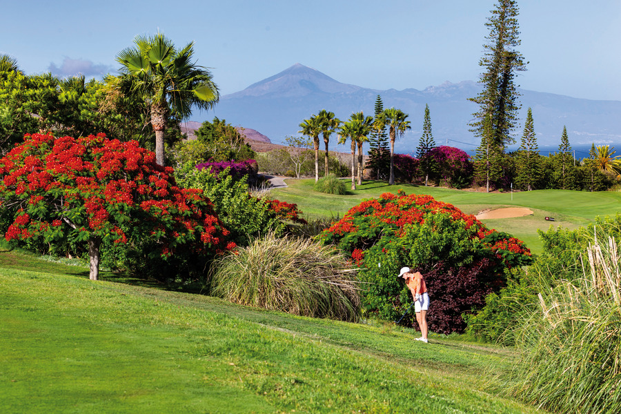 Campo de golf de la isla de La Gomera. Por un lado, ofrece las vistas más espectaculares de la belleza natural del paisaje gomero, del océano Atlántico y del Teide en Tenerife. El aspecto que más impresiona a los golfistas es el escenario en el que juegan. Y, en Tecina, ese escenario es inigualable. Incluso se importó arena de África para cubrir todas las calles, greens y tees. Un aspecto único de este campo es que se juega, como una pista de esquí, descendiendo una ladera con una pronunciada pendiente (el desnivel entre el punto superior y el inferior es de 175 m.), lo que proporciona al golfista una experiencia de golf casi continuamente en descenso. El golfista goza de vistas al mar en todos los hoyos.