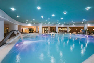 4-Sterne-Hotel mit 242 Zimmern und Suiten, Restaurants und Bars, Swimmingpools, Spa & Fitness Center, Beachclub (im Sommer), Sportmöglichkeiten, 18-Loch-Golfplatz.