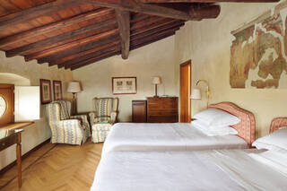 Das Renaissanceschloss mit seinen geräumigen Zimmern und Suiten im eleganten Landhausstil, mit Marmortreppen, antiken Holzböden und Freskendecken, ist umgeben von 144 Hektar Grün. Sodass Sie, wenn Sie sich nur ein paar Schritte von Ihrer 5-Sterne-Unterkunft entfernen, eintauchen in belebende Natur – oder sich einstellen auf alle Levels von Anforderungen auf den 27 Löchern des Golfplatzes Arzaga.