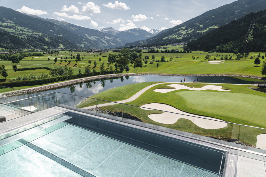 Ein Hotel der Extraklasse – Das Boutiquehotel lässt für Skifahrer aber auch im Sommer für die Golfliebhaber keinerlei Wünsche offen. Die 33 edel eingerichteten Zimmer versprechen durch die edlen Baumaterialien ein angenehmes Wohngefühl in heimeliger Atmosphäre. Alle Zimmer sind Nichtraucherzimmer und bieten Ihnen einen atemberaubenden Blick auf die Berge. Alle Zimmer verfügen über Dusche mit separatem WC, großem Flat-TV, Direktwahltelefon, Fön, Rasierspiegel, flauschige Bademäntel und Hauspantoffel sowie kostenloses WLAN. Kulinarisch werden Gäste auf Hauben-Niveau im Hotel-Restaurant "Genusswerkstatt" verwöhnt. Auf über 1.000 m² bietet Dir die CLOUD 7 mit Infinity Pool, Saunen und Dampfbad Wellness der Extraklasse. Ganz neu ist die exklusive Sky Sauna auf dem Sonnendeck – mit einzigartigem Blick auf den Golfplatz und die Zillertaler Bergwelt.