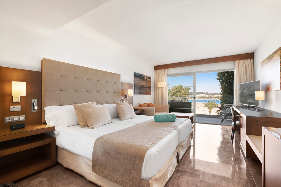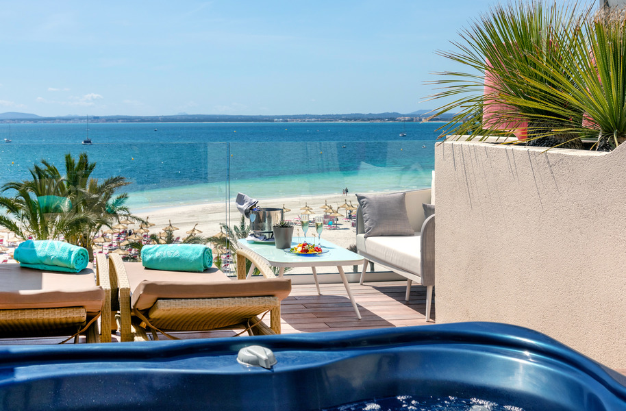 Schlafen Sie ein mit dem Rauschen des Mittelmeers in den hellen, modern eingerichteten Zimmern, die mit allen Annehmlichkeiten für einen erholsamen Aufenthalt ausgestattet sind. Besonders komfortabel sind die Royal Terrace Zimmer mit Minipool mit Hydromassage auf der privaten Terrasse und tollem Blick auf die Playa de Alcúdia.