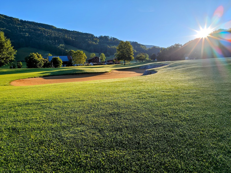 Abbiamo suonato in alcuni posti finora, ma questo a Ruhpolding è praticamente il top. Naturalmente qua e là c'erano dei posti ancora molto bagnati, ma il posto era in ottime condizioni. Il layout e lo sfondo montuoso ti fanno davvero impazzire. Un punto culminante, il tee shot del 13. Si apre, ma in cima sei ricompensato con una vista fantastica. Se il drive funziona ancora, difficilmente può andare meglio. Le buche sono tutte molto belle, a volte corte e a volte lunghe, ci sono ottimi bunker e sono sempre esattamente dove non ti servono. Abbiamo trascorso una giornata molto bella sul campo e ritorneremo sicuramente.