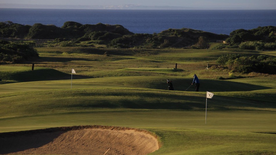 Ecco come funzionano i link. Fairway duri e ondulati... pochi pot bunker... green grandi e leggermente ondulati... a destra ea sinistra del fairway ampi prati o cespugli cespugliosi... spesso si vede il mare dietro le dune. Tutto un po' grezzo e informale. Abbiamo avuto solo un vento leggero, che non ha influito sul nostro gioco. Chiunque provi il solito forte vento PE qui avrà sicuramente una vera sfida.